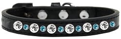 This posh 1/2" wide premium collar is jeweled with alternating large clear rhinestones and small colored stones. This collar is available in a large array of sizes and colors built  to suit your fur baby's mood and style.