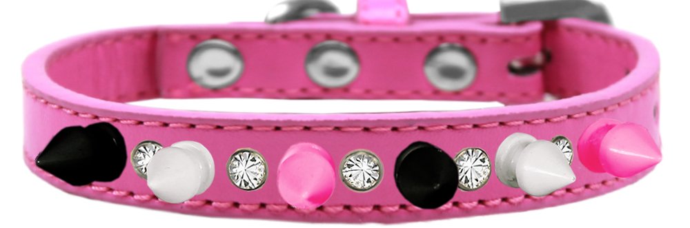 Crystal with Black, White and Bright Pink Spikes Dog Collar