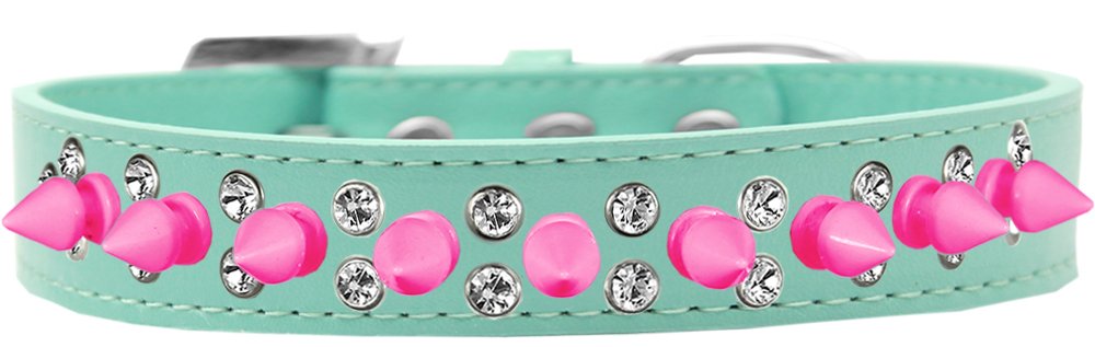 Home > Double Crystal and Bright Pink Spikes Dog Collar