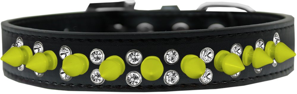 Double Crystal and Neon Yellow Spikes Dog Collar