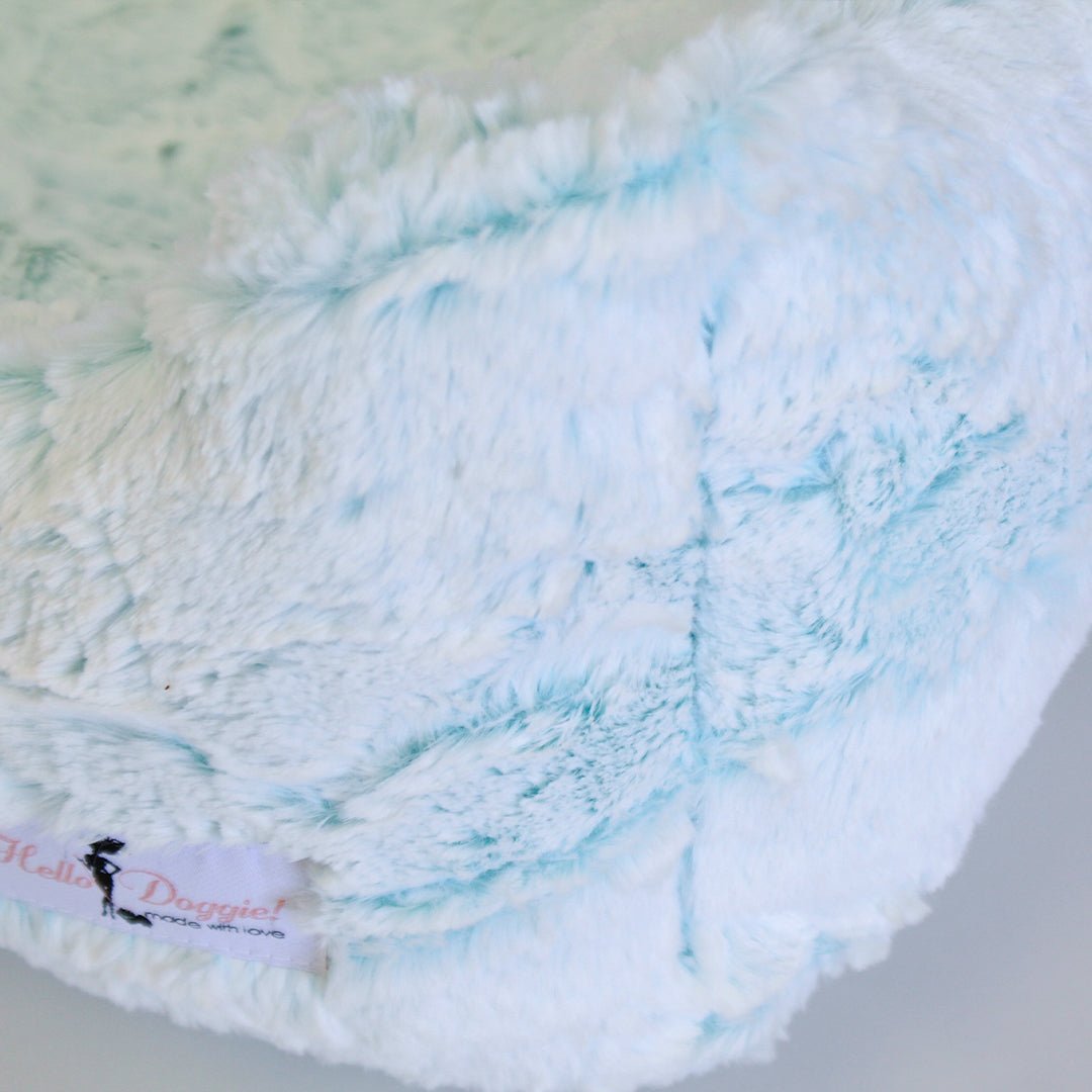 The Whisper Collection by Hello Doggie features high-quality soft fabric dog beds. This bed features a white fabric with a fluorescent tone peeping through. These soft-to-the-touch beds will have your pup snoozing away and cuddly wrapped in an ultra-soft matching dog blanket.