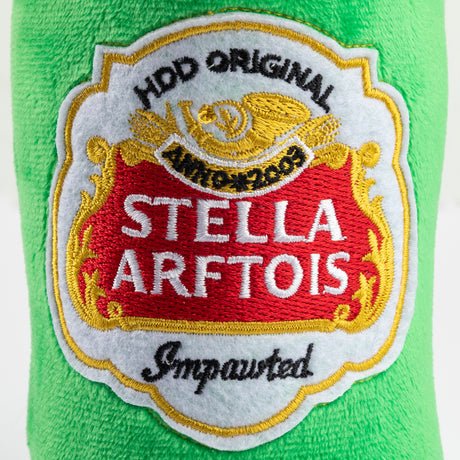 Give your mutt some malted-mayhem with our Stella Arftois Beer toy! This plush parody bottle of impawted Belgian beer is designed to delight even the snobbiest of schnauzers and satisfy your doggy?s thirst for fun. The round shape and tapered neck provide the perfect surface to chomp down on. And when they do, an enticing squeaker rewards each bite! Available in one size Measures 10" x 5" x 3"