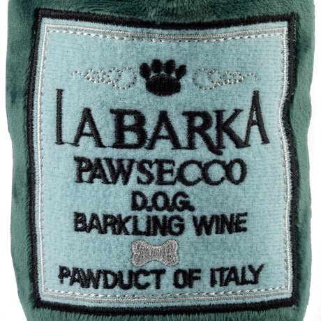 Make any moment a celebration with a bottle of bubbly for your pup! Our brand new LaBarka Pawsecco is the perfect toy for a barkling-good time. The narrow neck is great for tug of war action, while the wide body is perfect for chewing. And each chomp is rewarded with a chirp thanks to the squeaker hidden inside! Available in one size Measures 9.5" x 3" x 5"